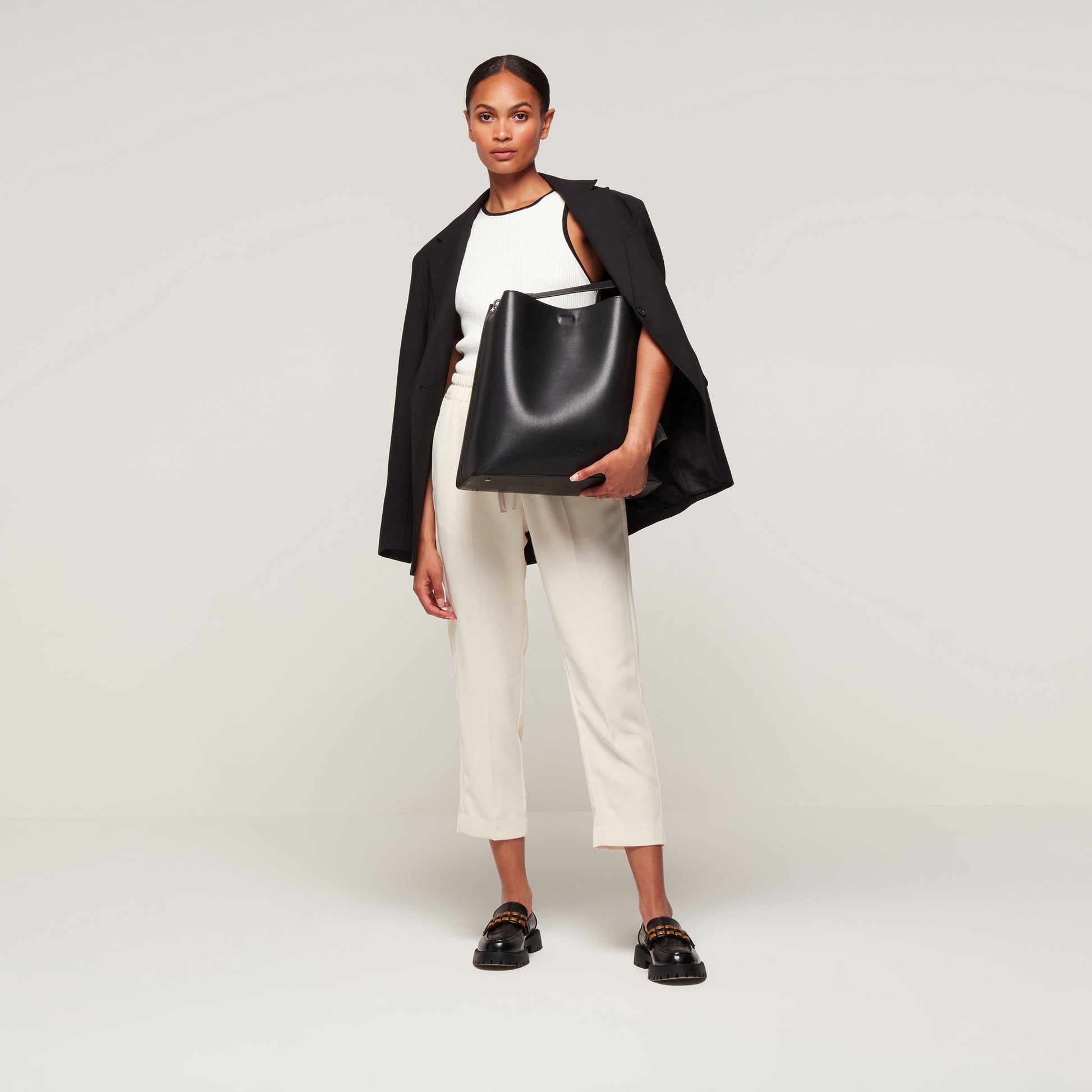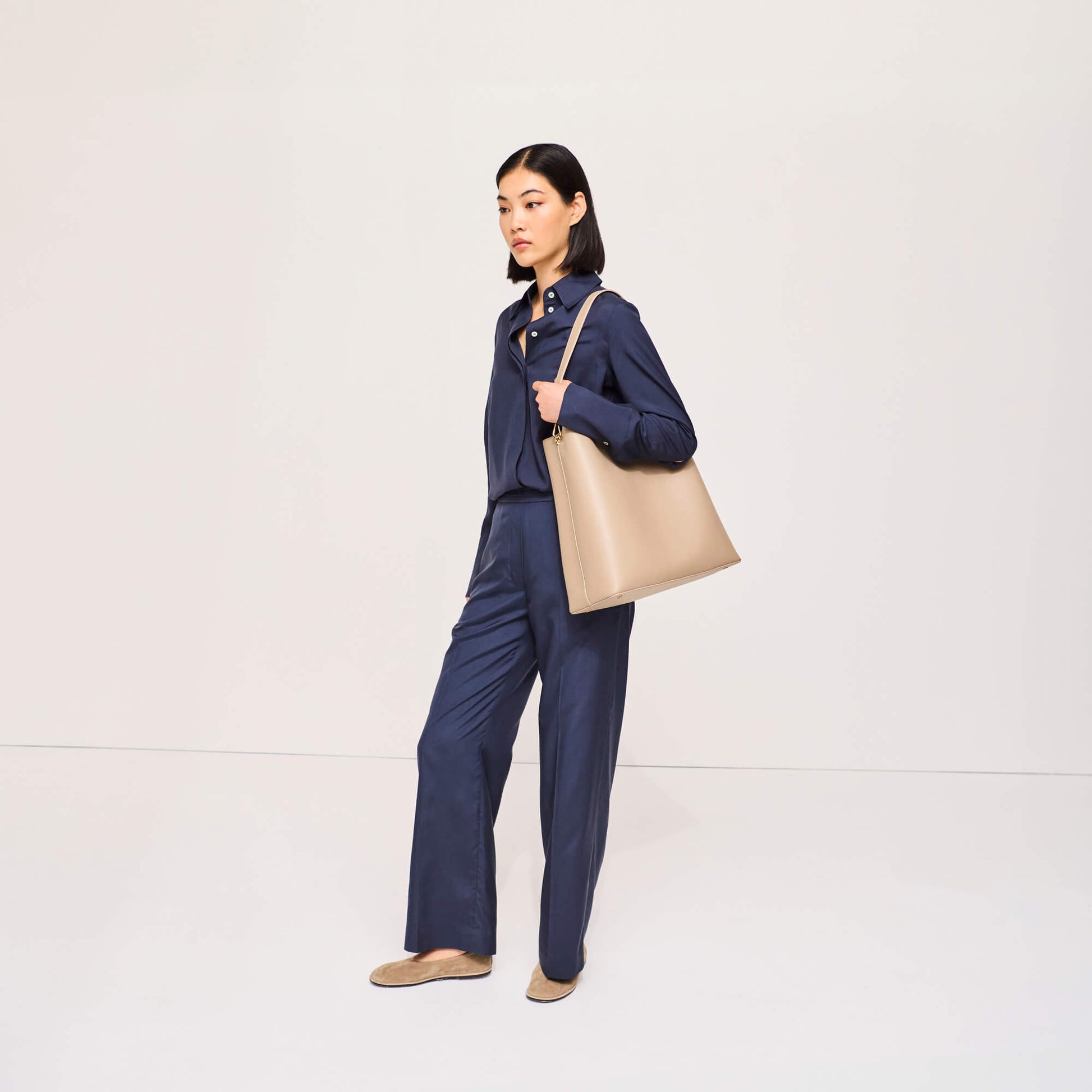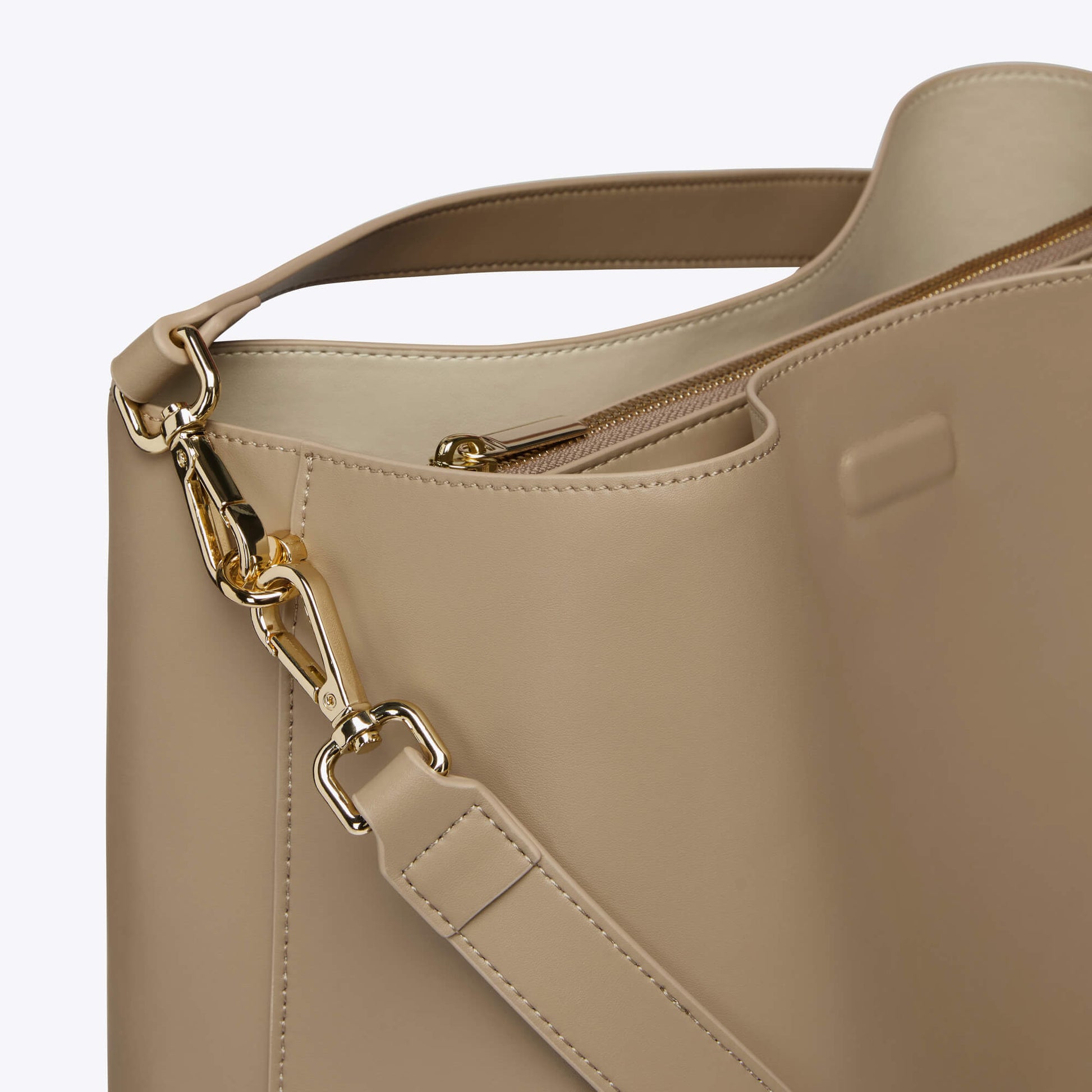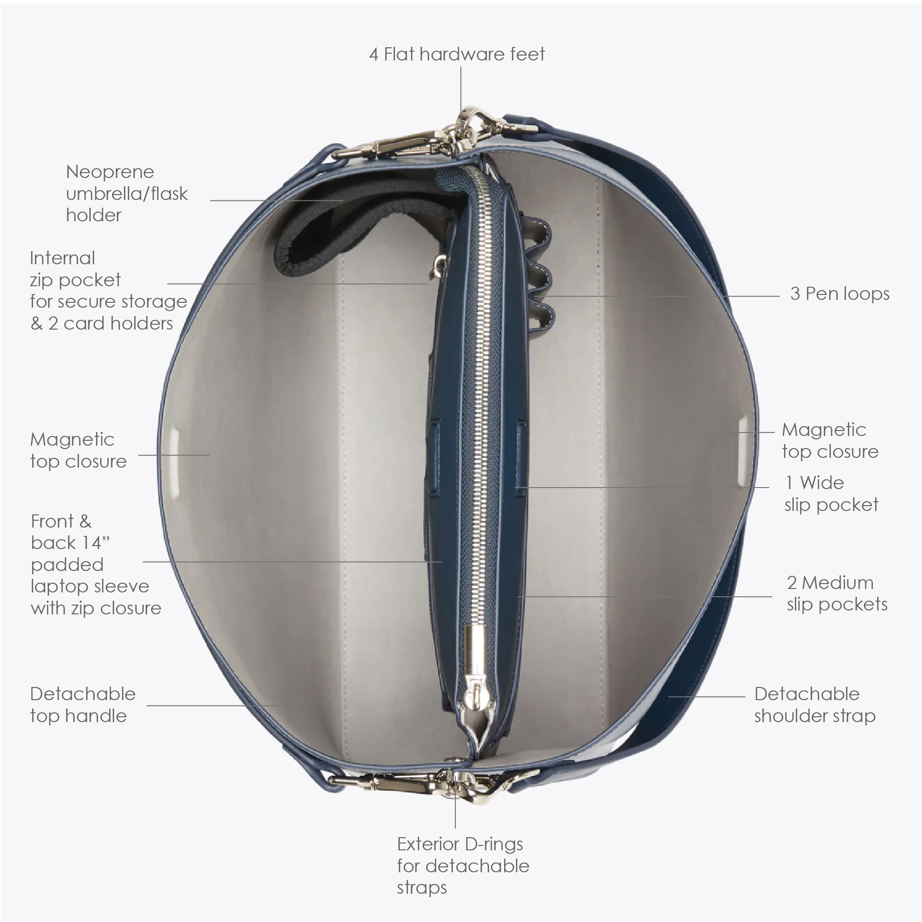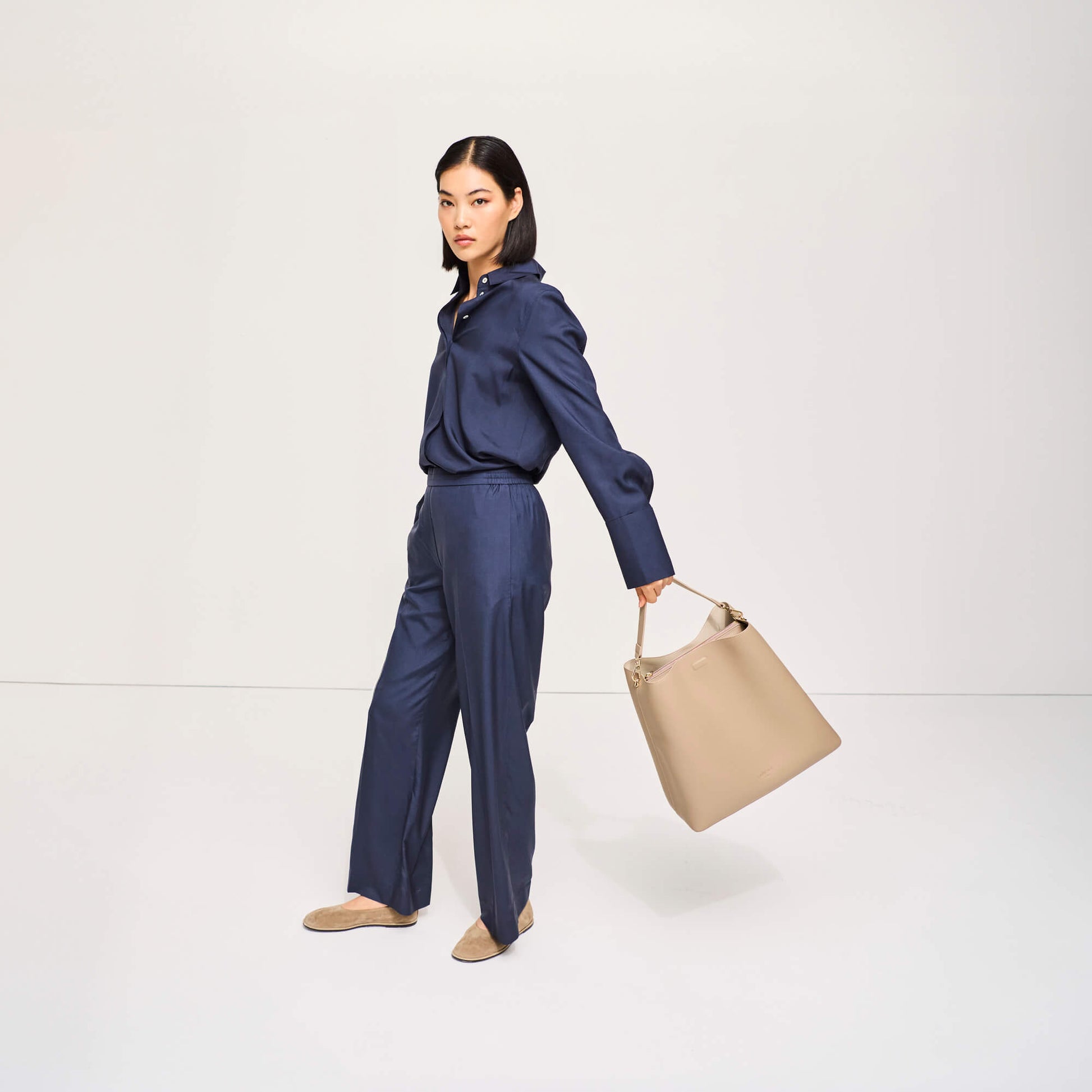 Perfectly sized to hold a laptop, charger, A4 documents, gym kit, shoes, lunch box, water bottle, and more—without losing its elegant shape.