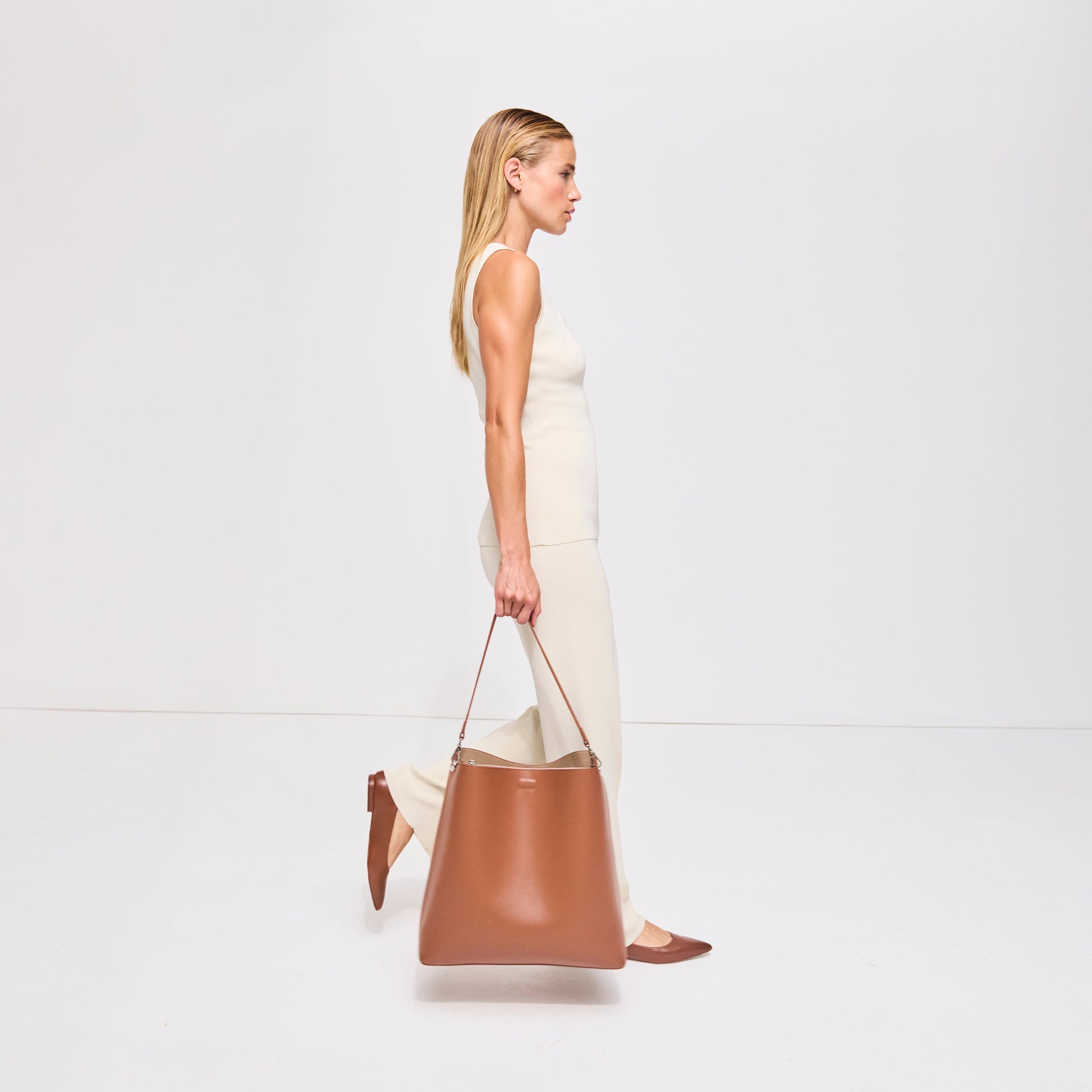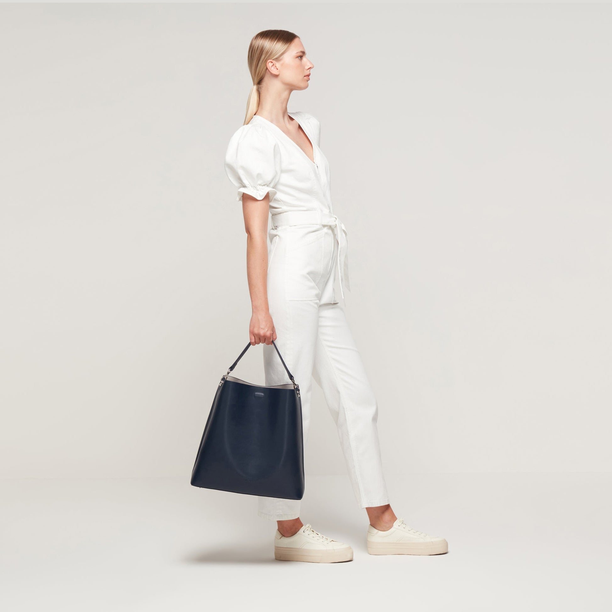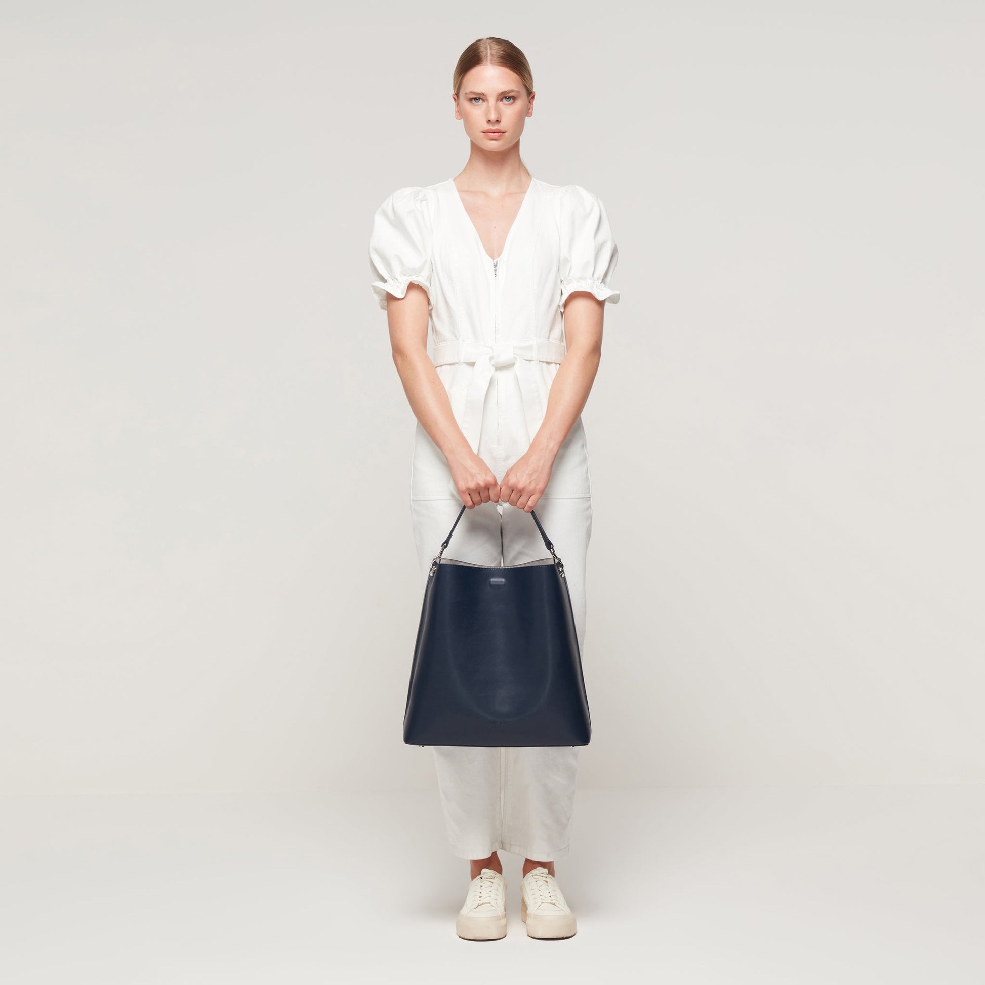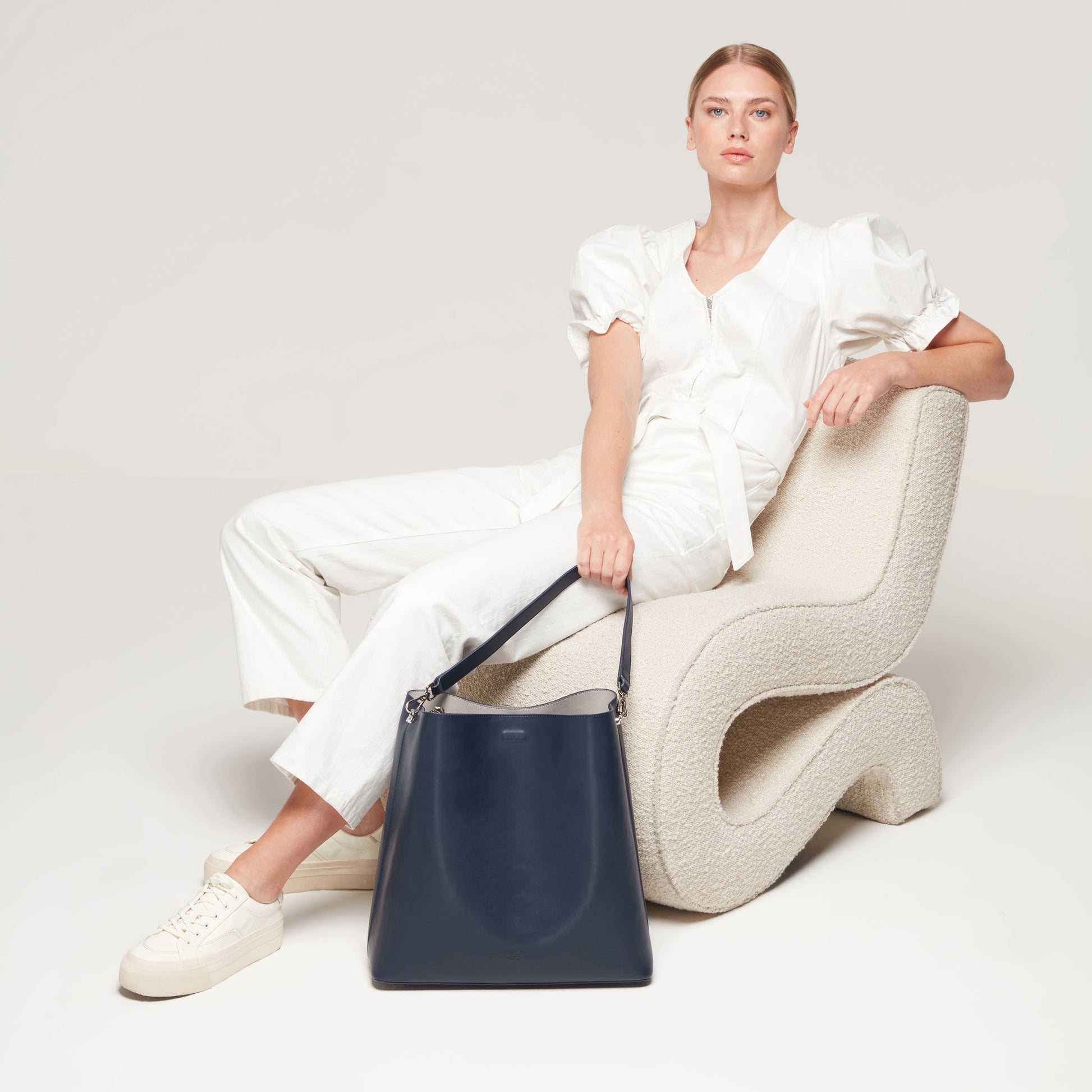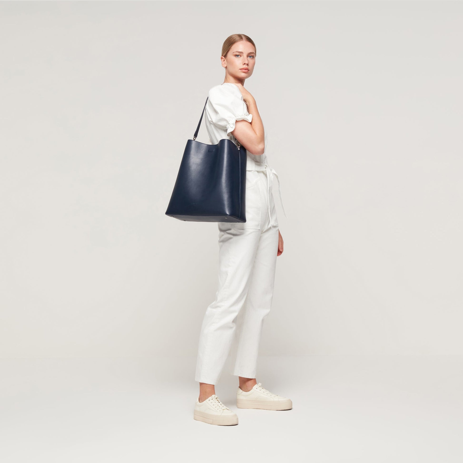 Perfectly sized to hold a laptop, charger, A4 documents, gym kit, shoes, lunch box, water bottle, and more—without losing its elegant shape.